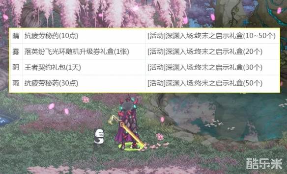地下城与勇士近期开启了一个赏花活动,那么这个活动的隐藏奖励要怎么获取呢?我们每天登录进入赏花场地,都可以根据天气在npc「春光明媚希曼·斯特拉」处花费材料兑换道具,接下来酷乐米小编给大家带来了详细的《地下城与勇士》赏花活动隐藏奖励获取方法!