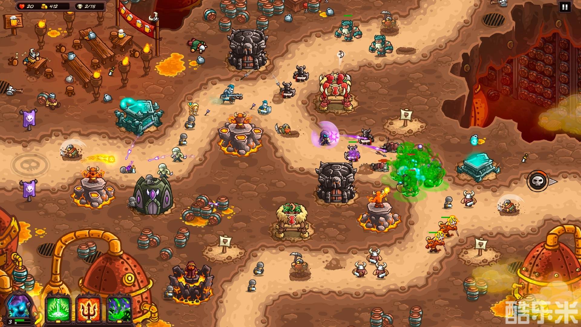 特点:塔防玩法、丰富的兵种和技能、精致的画面。