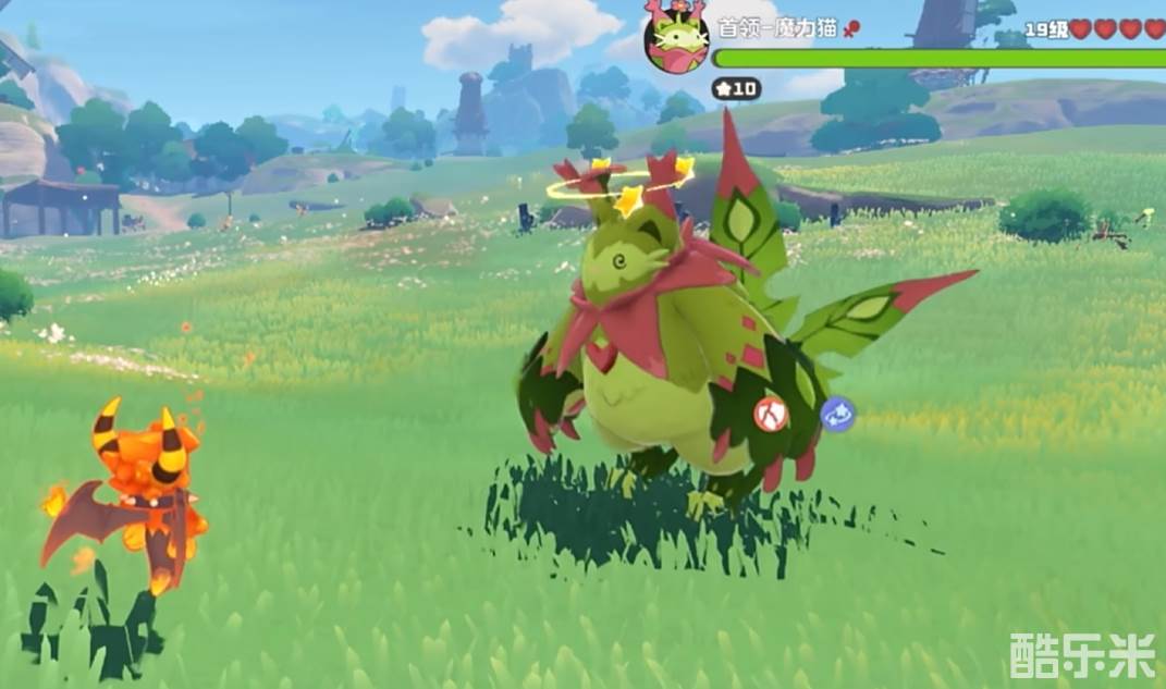 首先第一个boss是魔力猫,它是我们在游戏中会遇到的第一个boss,相对来说挑战的难度也是比较低的。挑战魔力猫要携带火属性的精灵,这里强烈推荐大家选择御三家之一的火焰精灵,将它培养至十级后便能轻松战胜魔力猫。