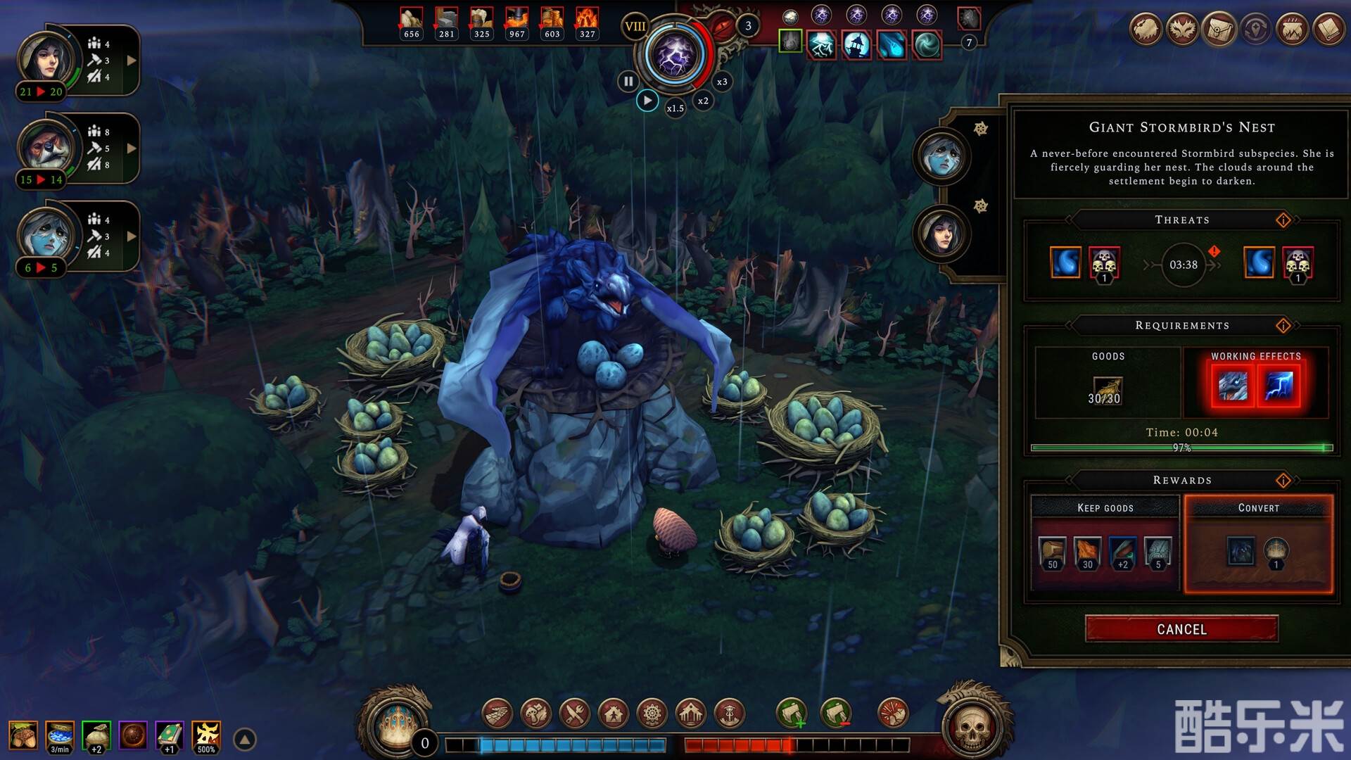 资源管理和策略规划: 玩家需要收集资源、建造建筑、发展科技,并抵御风暴的侵袭。