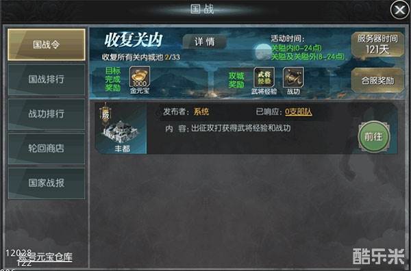 国战不是一个人的战斗,他需要与本国的玩家一起并肩战斗,所以小编列下了左右效率的国战模式。