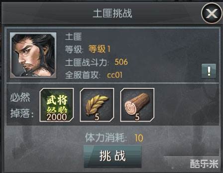 土匪挑战:打野可以获得大量的资源和武将经验。