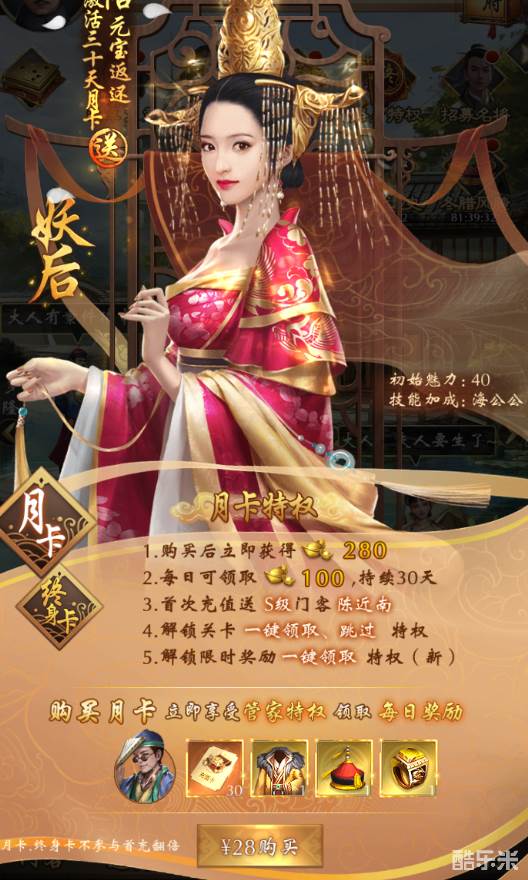 2、必购月卡永久卡,管家特权还有王爵套可领,购买终生卡更可解锁佳人西施 s级门客冯锡范。