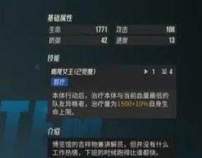 本体行动后,治疗本体与当前血量最低的队友异格者,治疗量为1500+10%自身生命上限。