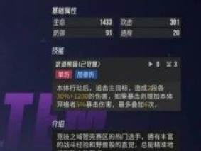 本体行动后,追击主目标,造成2段各30%+1200的伤害,如果暴击则增加本体异格者5%暴击伤害,最多叠加6次。