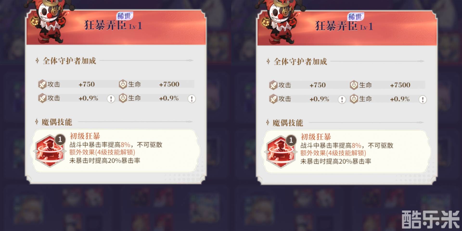 暴击队必备魔偶!和暴击魔偶互相搭配,可以极大提升角色的双暴。