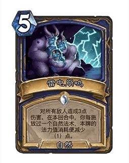 对所有敌人造成3点伤害。在本回合中,你每施放过一个自然法术,本牌的法力值消耗便减少(1)点。