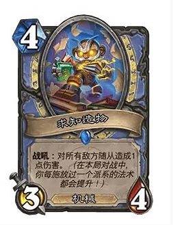 战吼:对所有敌方随从造成(1)点伤害。(在本局对战中,你每施放过一个派系的法术都会提升!)