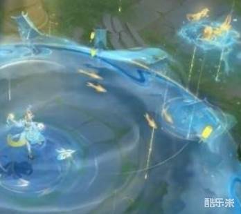 4、二技能·霜叶舞:出现一个类似鱼塘的大圆圈,上面还旋转着一把伞。
