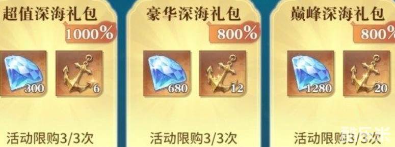 可以先氪98元的深海周卡=28个黄金锚(这个周卡性价比非常高)。