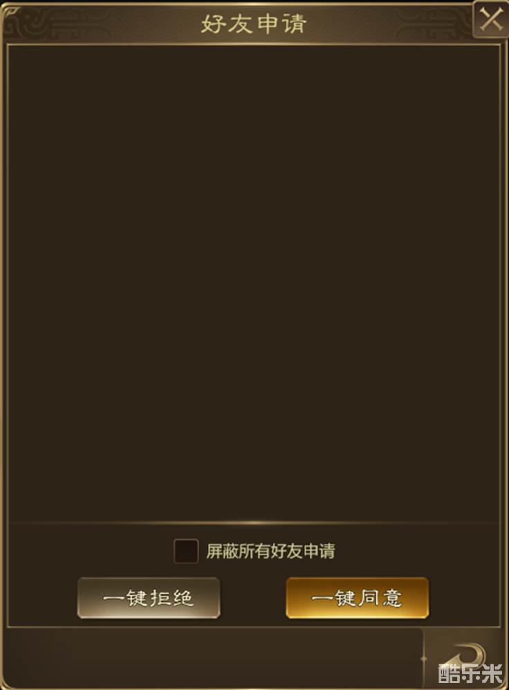 若收到好友申请,可点击左下角的“好友-邮件”图标,点击“好友申请”即可进行同意或拒绝操作。勾选“屏蔽好友申请”之后不会看到任何好友申请。