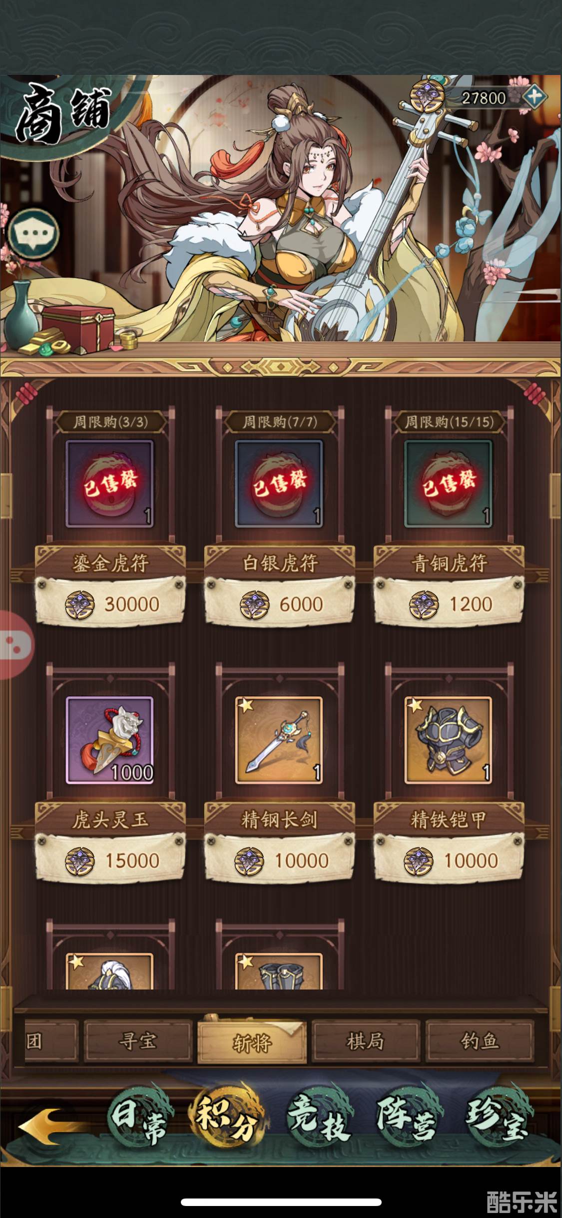 斩将商店这里,优先换虎符,正常打斩将每周的虎符都能换满,多余的币也不要换成虎头玉,都存着,后面虎符弹珠会有对应活动,虎符优先提升主c,主c有两个红符后再适当换虎头玉洗虎符