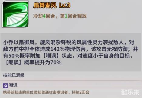 小乔在队伍中担任前排的坦位,对敌方造成伤害时有概率嘲讽该目标,可有效分摊一部分伤害。下面和酷乐米小编一起来看看吧