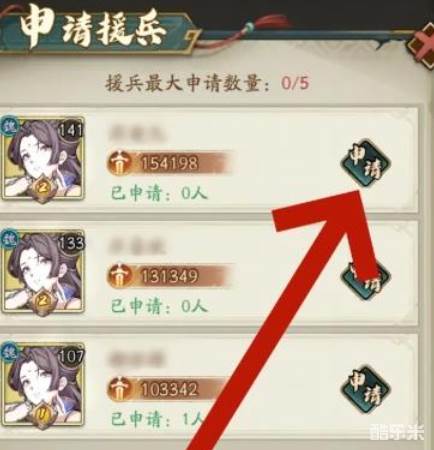 4、最后我们在申请页面,点击右侧的申请按钮,即可申请武将援兵。