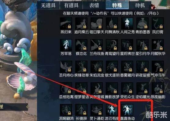 3、找到表情【蠢蠢鱼动】,在雕像旁边使用这个动作即可收回赐福;