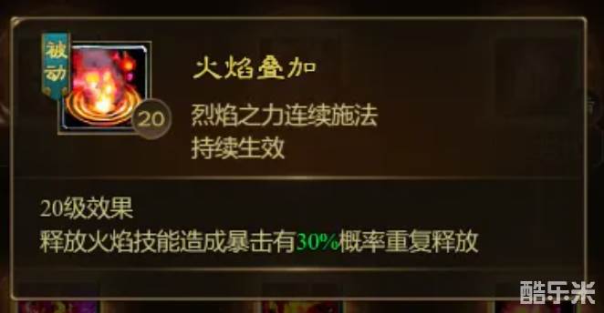 火焰叠加:释放火焰技能造成暴击有概率重复释放