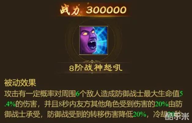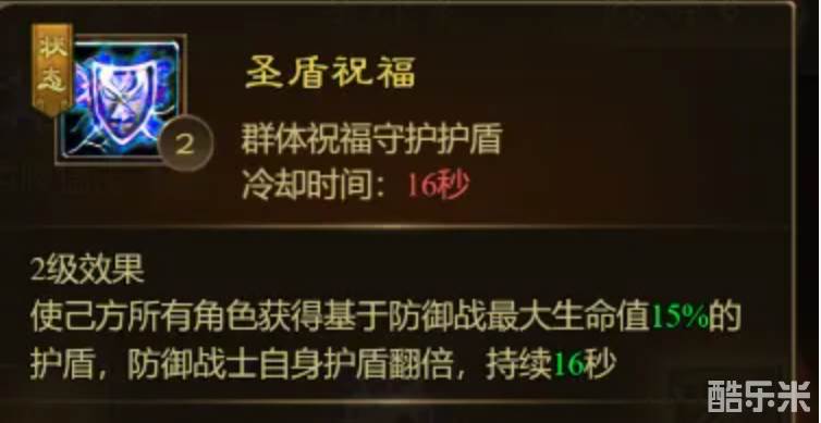 评价:能够降低整个队伍所受到的伤害,无论你的防御战士是作为主力还是辅助,这个减伤技能都是很香的!