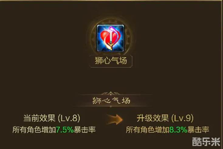 推荐大家选择狮心气场,提高其他职业的暴击率,从而弥补防御战士本身输出不足的缺点,增加队伍整体的输出,就一句话“团队至上”!