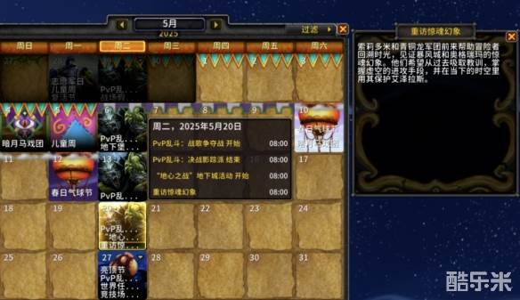 1、重返惊魂幻象是魔兽世界11.1.5版本的活动,根据测试服的信息来看,这个活动将会在2025年的5月20日上线。