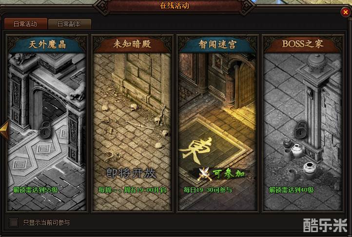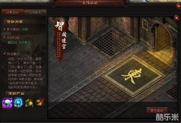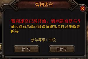 在智闯迷宫活动开始的时候,系统会自动出现参与提示面板。