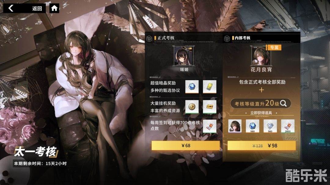 68解锁正式考核以后得一个前期万金油奶妈【瑶姬】,后续的数千暗晶还有大量资源在所有礼包里面都属于持续收益最高最全面的一档,至于98档看个人意愿,我觉得多了30可以得个皮肤还有额外资源奖励是比较划算的。