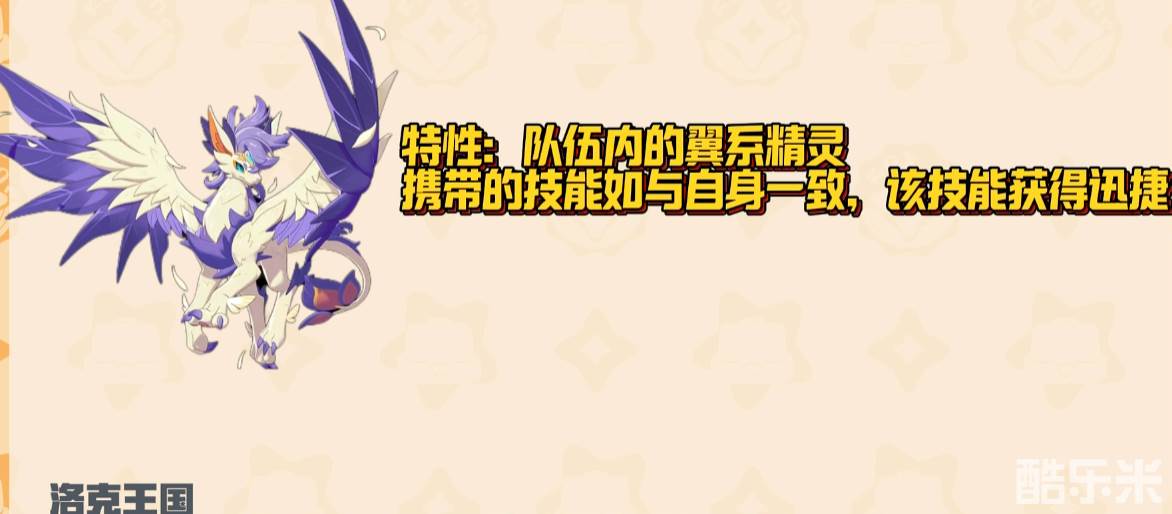 翼王的特性是翼王的强大能力之一,当队伍内的翼系精灵携带的技能和自身一致,这个技能获得迅捷,迅捷的效果是可以让精灵在切换上场的时候自动释放该技能,翼王的专属技能是释放所有携带迅捷的技能,也就是说翼王可以在上场的时候直接一次性打出自己所携带的4个技能,打出非常爆炸的伤害,翼王的工具人选择携带锤头鹳和号儿鱼们可以有效的提升翼王入场时的伤害。