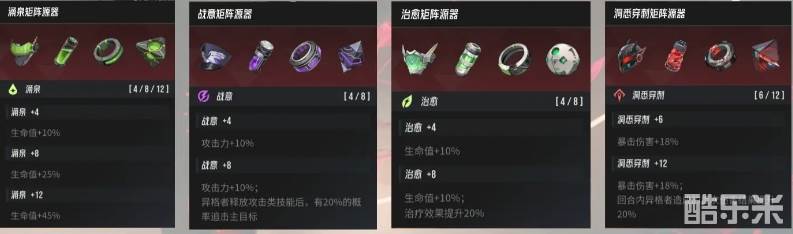 目前游戏中每一套矩阵套装部件精致且完备,主要由面甲、核心、晶管以及腕轮这四个关键部件组成,这些部件可都不是普通的装饰品,它们对于角色主属性的提升有着至关重要的作用,在游戏玩法设定中,角色能够穿戴的装备数量上限为6件,而在这些可装备的物品中,红色装备尤为特殊。