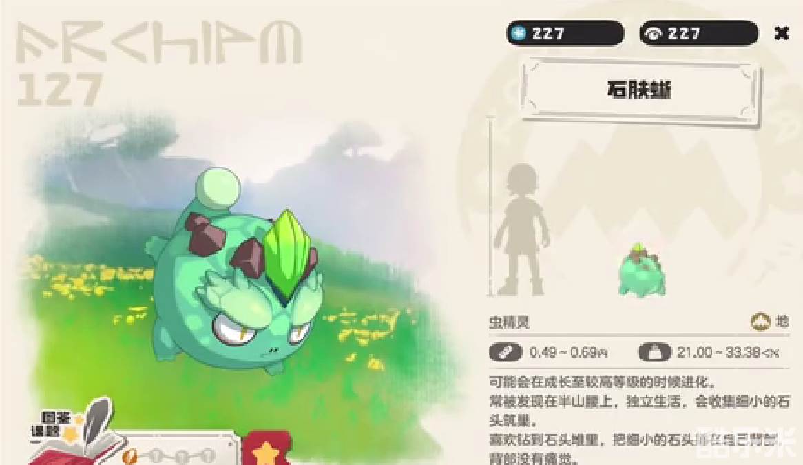 石肤蜥作为一种地属性的精灵,经常在半山腰上,独立生活,也会收集一些小的石头筑巢,通常会钻到石头里面,背部是没有痛感的。不过它却具备刺肤的特性。玩家在利用石肤蜥的时候要注意,它的物理防御性能跟刺肤的特性,毕竟在战斗的时候,它能够对物理攻击具有一定的反制作用。