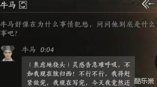 在燕云十六声中牛马可以在阿依苏找到进行对话,牛马好像在为什么事情犯愁,玩家通过与他交流鼓励他让他能够坚持去写文章就可以成功结交了,那么下面和酷乐米小编一起来看看吧
