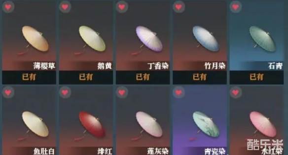 1、玩家通过副本后需集齐水染撑花系列10把伞:水红染、青瓷染、莲灰染、竹月染、丁香染、绯红、鱼肚白、石青、鹅黄、薄樱草;