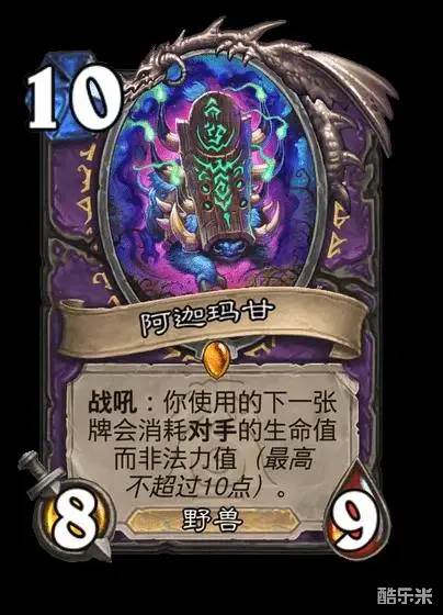 术士的荒野之神,战吼:你使用的下一张牌会消耗对手的生命值而非法力值(最高不超过10点)。