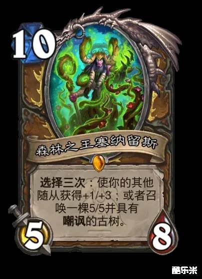 德鲁伊的荒野之神,选择三次:使得你的其他随从获得+1/+3;或者召唤一棵5/5并具有嘲讽的古树。