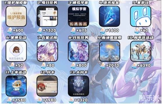 崩坏星穹铁道3.2版本上半能获得多少星琼,星琼在游戏中主要用于购买星轨专票和星轨通票,进行抽卡和回复体力,是对玩家非常重要的一个游戏道具,那么在这一版本中我们可以获得多少的星琼呢,酷乐米小编整理了可获取的星琼数量及出处都放在下方,感兴趣的玩家可自行查看。