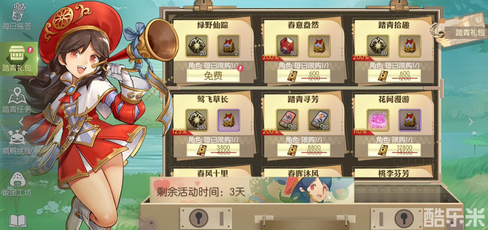 而对于那些喜欢超值礼包的玩家,“踏青礼包”自然也不能错过。活动期间,特别推出了限时特价的礼包,让你以优惠的价格获得更多有用的道具和奖励。对于那些有购买需求的小伙伴来说,这可是大大节省了资源和时间!