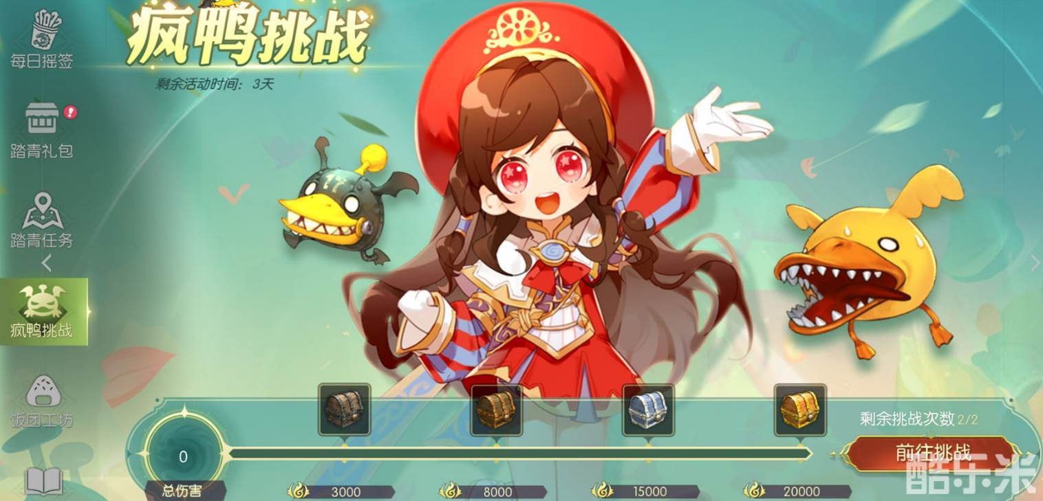 活动中最不容错过的,还是“疯鸭挑战”副本。这个副本每天都能挑战两次,通过不断的战斗和挑战,你能够积累积分,达到一定的分数目标,就能领取到丰厚的奖励。