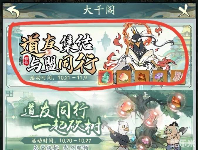 2、【公会玩家】的【大千阁】:加入公会后,第二天出现在大千阁活动菜单。活动时间存在大概20天,每个区时间独立计算。