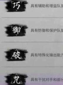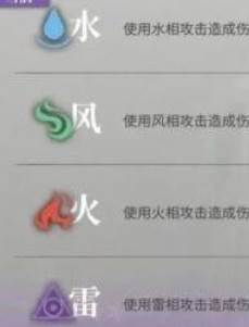 游戏角色分为水、火、风、雷四种属性,存在克制关系:水克火、火克风、风克雷、雷克水。职业分为巧(增益辅助)、咒(减益辅助)、御(肉盾)、破(输出)四类。