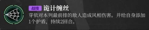 【丝牢】:获得芽依部分最大生命值的护盾,芽依部分防御值,受到的伤害减少。