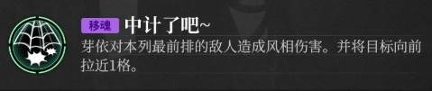 芽依对本列最前排的敌人造成风相伤害。并将目标向前拉近1格。