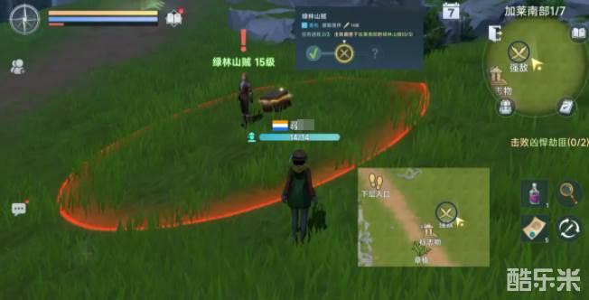 一般在场景里悍匪周围都会有一个红圈,玩家如果想要和对方战斗,那就可以踏进这个范围,但如果不进入到这个范围就不会和对方战斗,这样就可以绕过对方去寻找土堆或者是其他的宝箱,另外在场景里也会有像树木,矿石这样的物品可以开采。