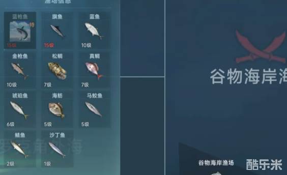 在谷物海岸渔场有15级的蓝枪鱼,这是一种特级鱼类,另外还有15级的旗鱼,10级的蓝鱼,金枪鱼,以及等级比较低的沙丁鱼和马鲛鱼,好望角海域有15级的大白鲨和14级的青鲨,这里的鱼类体型相对来说比较庞大,在黑海渔场的鱼类等级都比较低,最高级的就是鲟鱼,剩下的就是沙丁鱼和鳗鱼。