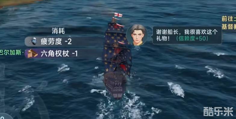 还有一种方式就是海上处理事件,在出海以后在大海上航行冒险的时候会随机出现突发事件,玩家解决这些突发事件后就可以发现自己的航海士头像右边的礼物图标可以点击了,玩家只要拥有自己的航海士所喜爱的礼物就可以点击赠送给相应的航海士增加航海士的信赖度,两种送礼物的方式都有一定的概率,所以送礼比较麻烦,但是收益还不错。