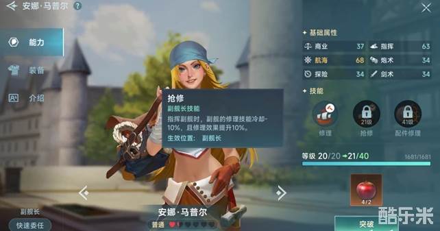 那么小编非常推荐的一个航海士就是安娜航海士,因为安娜航海士是玩家的新手引导员,定位是副舰长,属于是奶妈辅助类型的航海士,无论是前期还是中后期都非常适合自己的阵容发展,尤其是安娜航海士的三个技能都是和修理相关的,所以无论是战斗还是日常海航冒险安娜航海士都是非常不错的选择,刚进入游戏就可以获得更是加分。