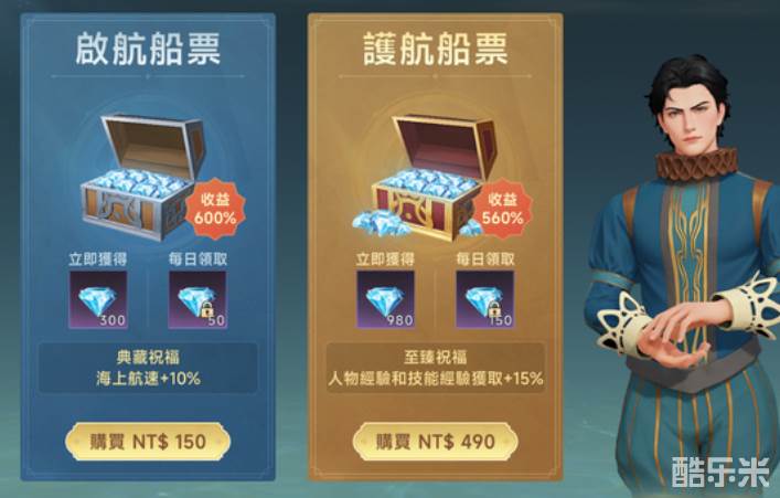 想要在游戏里氪金,那首选的就是月卡,在这个游戏里会设定两种月卡,一种月卡能增加航行速度,另外一种是能增加经验获取的月卡,购买月卡之后,不但可以每天都领取相应数量的钻石,I另外在游戏里还能获得特定的经验加成,大家可以根据自己的需求选择不同的月卡购买,另外,还可以通过在游戏里购买祝福叠加,提升特定的经验,就比如游戏里可以直接花费3000钻石,购买三种祝福,分别是风神,雷神和海神三种祝福,这几种祝福能让人物经验,技能经验得到提升。