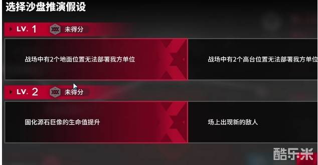 1、LV1:战场中有2个地面位置无法部署我方单位。