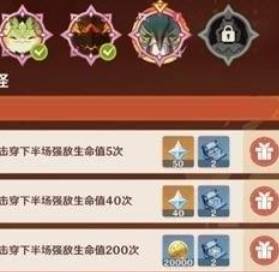 单次挑战中击穿下半场强敌生命值5/40/200/900次。