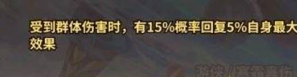 受到群体伤害时,有15%概率回复5%自身最大生命值并驱散所有控制效果