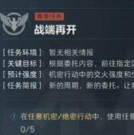 4、任务目标:在任意机密/绝密行动中,使用任意冲锋枪击败5名敌方士兵
