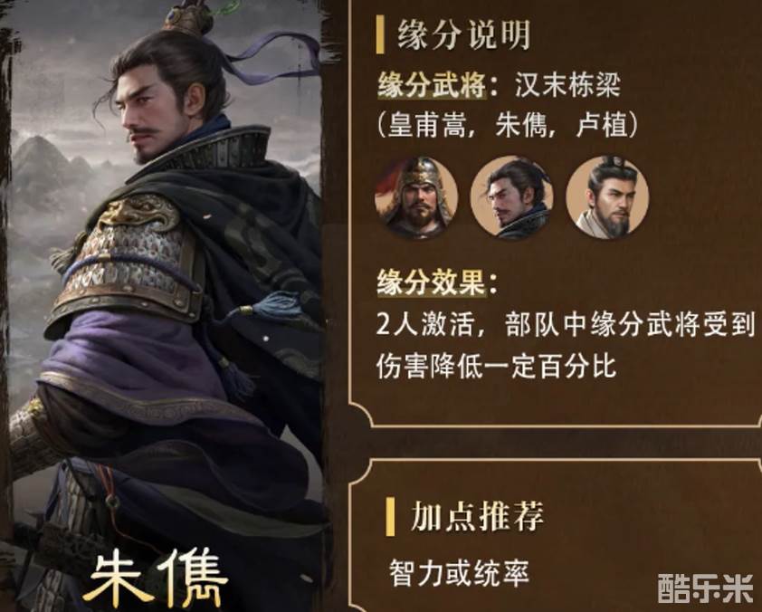 综合来看,朱儁是一位非常全能的武将,他不仅能通过谋略控制敌人、提高自己和队友的作战能力,还能通过缘分武将提供的减伤效果,在战场上为自己的阵营提供额外的保障。虽然他的武力数值可能不如一些顶级战将,但在谋略的应用上,他却有着足够的优势。如果你喜欢用智慧决胜负,那么朱儁绝对是你不可或缺的一员猛将。