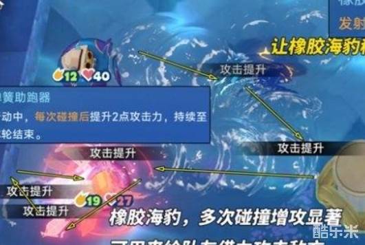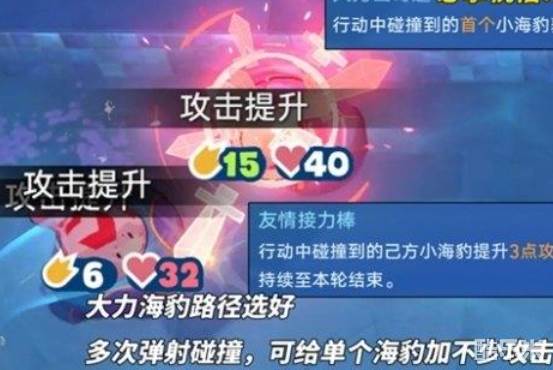 2、使用大力海豹尽可能多的碰撞橡胶海豹,为其叠加攻击力,还可依靠反弹等操作增加碰撞次数,多的叠加攻击力。